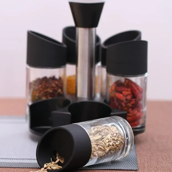 منظم البهارات الدوّار 360 درجة مع ست زجاجات