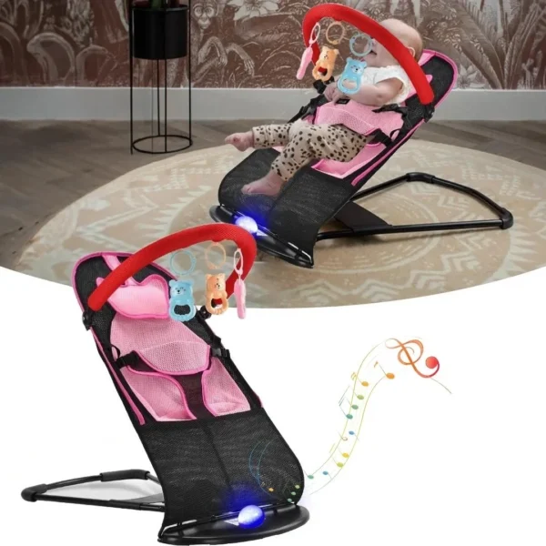سرير الأطفال الهزاز المضيء مع موسيقى وحلقة ألعاب قابلة للفصل